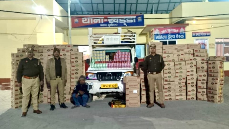 पिकअप वाहन से भारी मात्रा में तस्करी कर बिहार ले जायी जा रही शराब बरामद